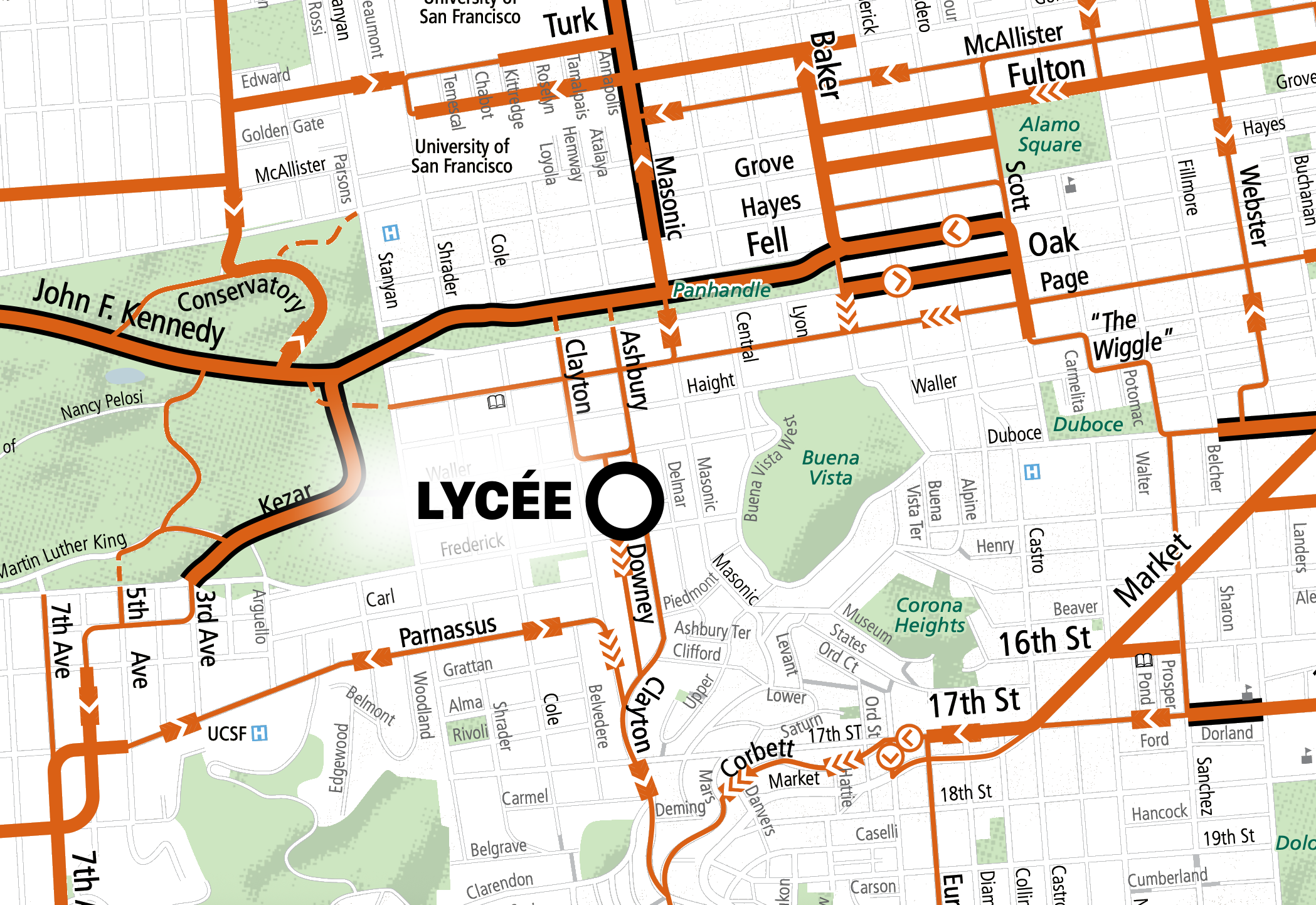 In addition to bikes, the Lycée is well-situated near a number of transit lines.